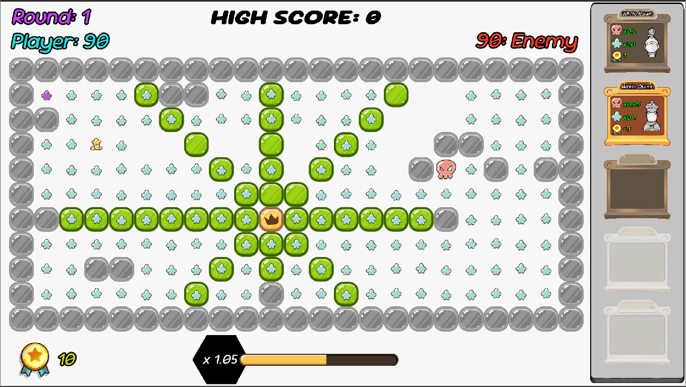 A rogue-lite arcade game about chess pieces, pellets, and capturing your enemy before it captures you. How many rounds can you survive?